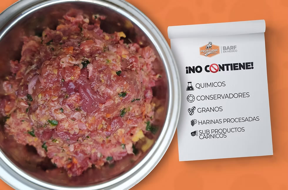 Comida cruda y biológicamente apropiada para tu mascota, sin químicos ni conservantes, y libre de agentes cancerígenos.